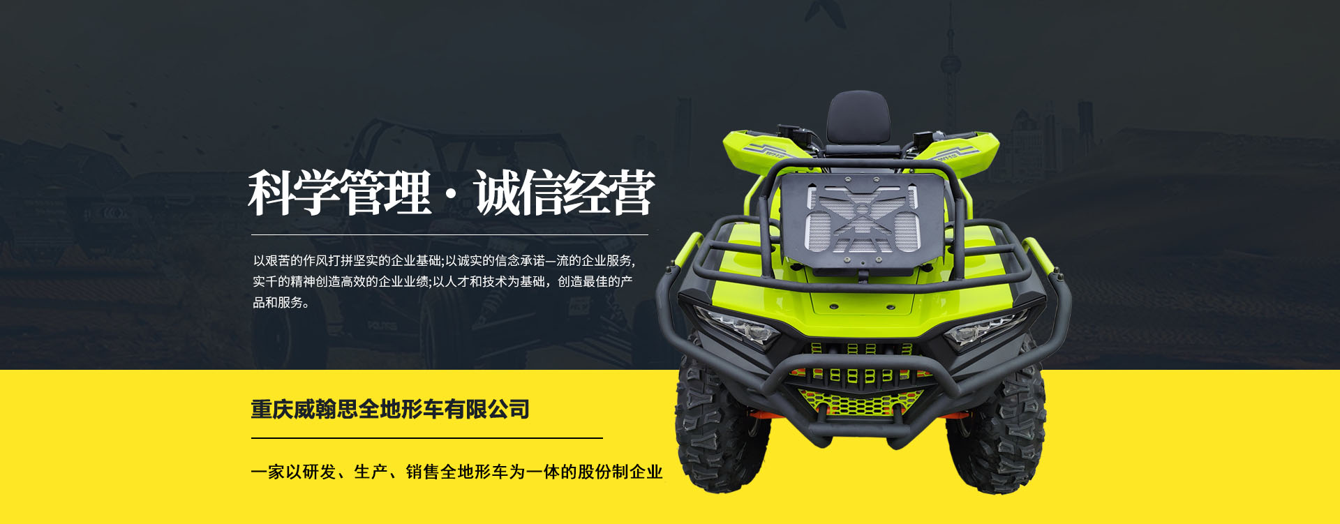 重慶威翰思全地形車有限公司成立于2016年9月,一家以研發(fā)、生產(chǎn)、銷售全地形車為一體的股份制企業(yè)。公司銷售額超過5000萬。現(xiàn)有專業(yè)市場(chǎng)售后服務(wù)團(tuán)隊(duì)。公司秉承“敬業(yè)、超越、活力、用戶至上”的企業(yè)精神,“以人為本,合作共贏;”的核心價(jià)值觀,“嚴(yán)格管理創(chuàng)優(yōu)質(zhì)、名牌戰(zhàn)略拓市場(chǎng)”的質(zhì)量方針,使公司一步步邁上新的臺(tái)階。公司與重慶航天巴山摩托車制造公司達(dá)成戰(zhàn)略合作協(xié)議。共同出資致力于沙灘車旅游市場(chǎng)產(chǎn)品研發(fā),項(xiàng)自運(yùn)營指導(dǎo),市場(chǎng)維護(hù)等全方位市場(chǎng)拓展。重慶航天巴山摩托車制造公司授權(quán);重慶威翰思全地形車有限公司為中國區(qū)唯─戰(zhàn)略合作伙伴。